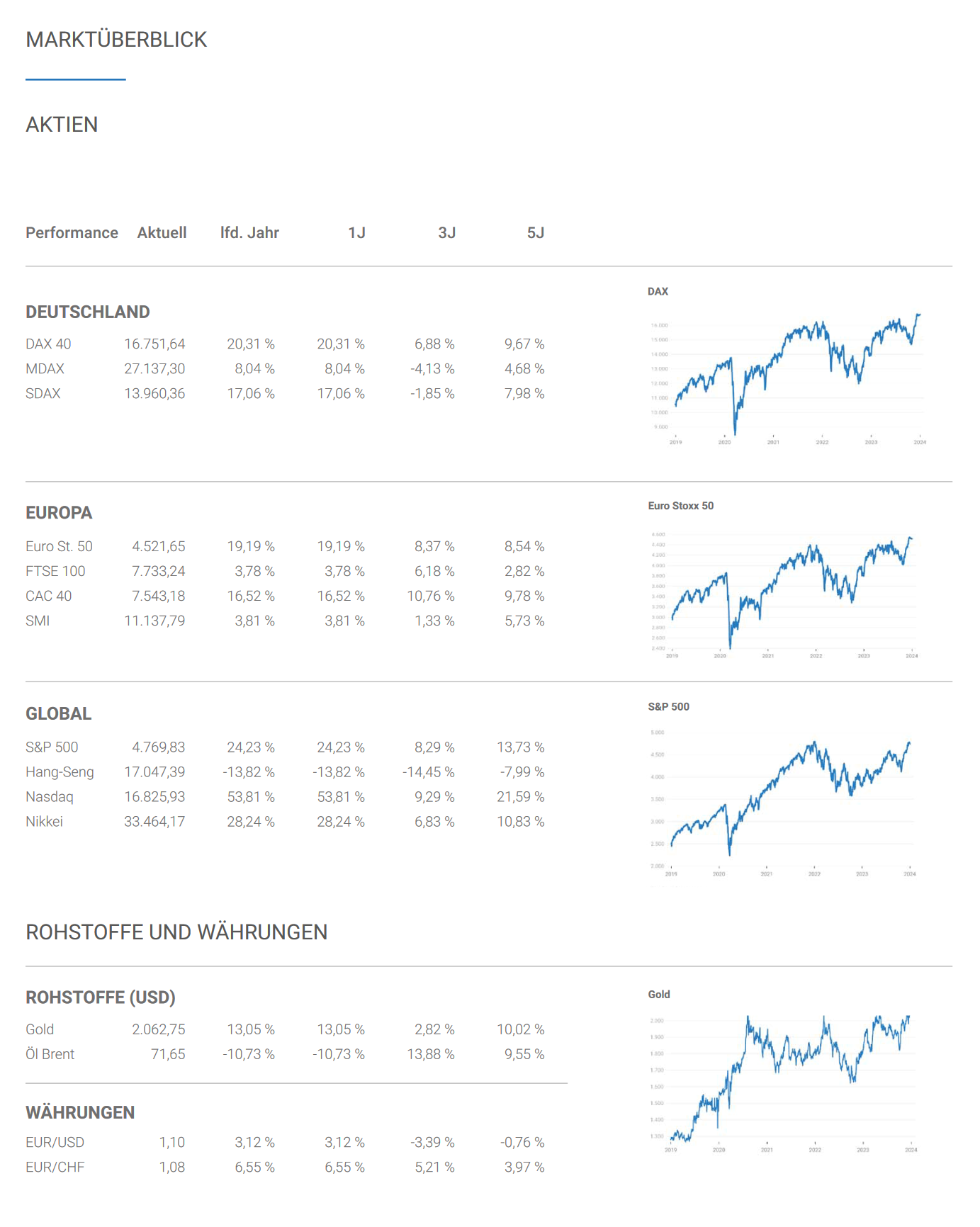 An den Finanzmärkten ergab sich im Herbstquartal erhöhte Risikobereitschaft getragen von stabilisierten Einkaufsmanagerindices in der westlichen Hemisphäre und von rückläufiger Preisinflation und dadurch induzierten Zinssenkungserwartungen. Hoffnungswerte auf die Möglichkeit einer diplomatischen Lösung des Ukraine-Konflikts unterstützten gleichfalls. Der Gaza-Konflikt wurde und wird aktuell als regionaler Konflikt bewertet.